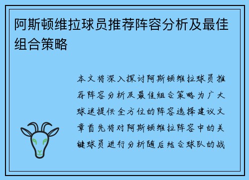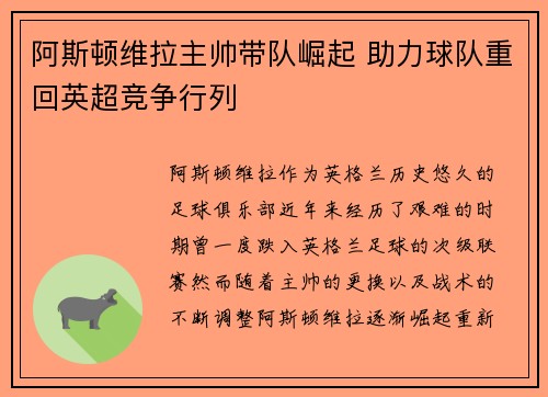 阿斯顿维拉,作为英超历史上的传统强队之一,近年来在赛季表现中逐渐崭露头角,吸引了大量球迷和媒体的关注。本文将从阿斯顿维拉的历史背景、球队实力、战术风格以及管理层和资金支持四个方面,深入分析该队是否具备在英超争冠的潜力和成为强队的地位。通过对这几个维度的详细探讨,本文将为读者呈现出阿斯顿维拉的现状和未...