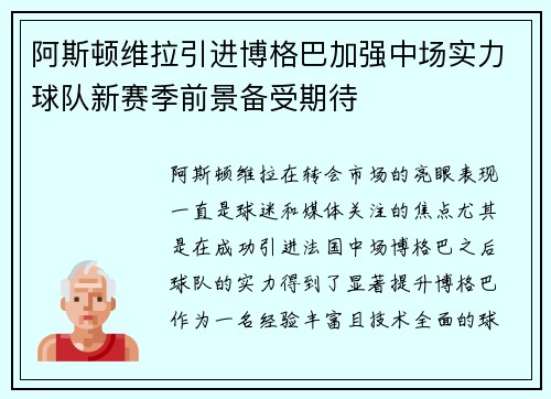 在英超的新赛季即将来临之际,阿斯顿维拉的表现备受期待。作为一支历史悠久的俱乐部,维拉近年来在各方面的重建与提升让球迷对未来充满希望。新赛季的挑战与机遇将决定球队能否在英超赛场上继续取得突破,迎来更大的成功。本文将从四个方面探讨阿斯顿维拉在新赛季的挑战与期待,包括球队的阵容建设、教练团队的影响、战术风...